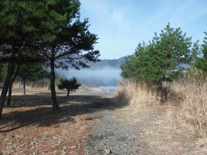 本栖湖キャンプ場から竜ヶ岳登山口までは本栖湖南岸の