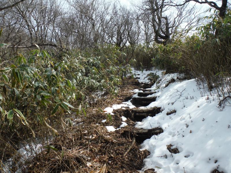 この時期は雪解けで頂上周辺は歩きづらいですが危険な場所はなく、