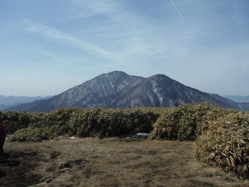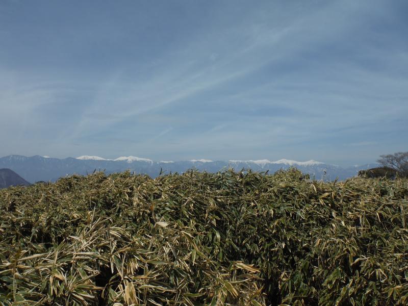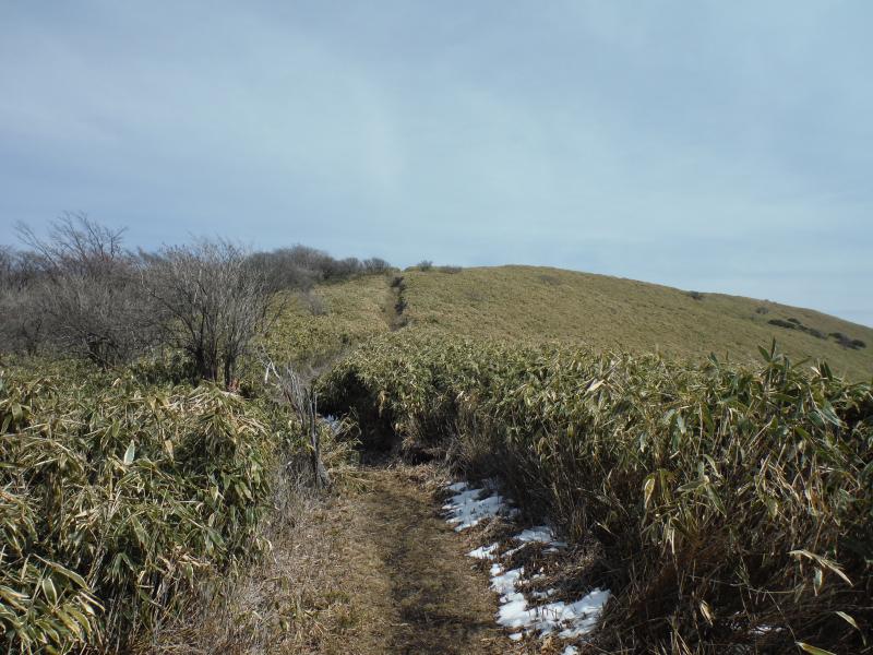 傾斜が緩んで一面の笹原が見えたら頂上は目前です。