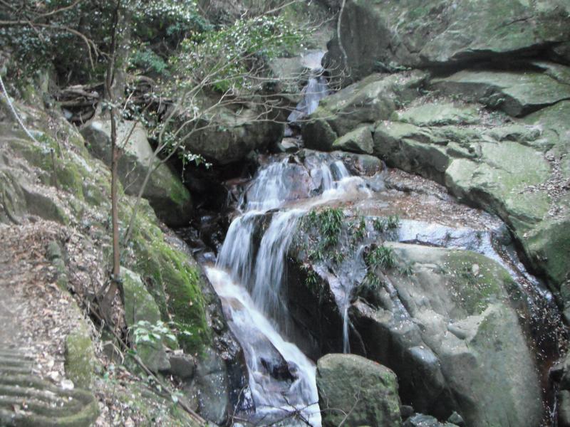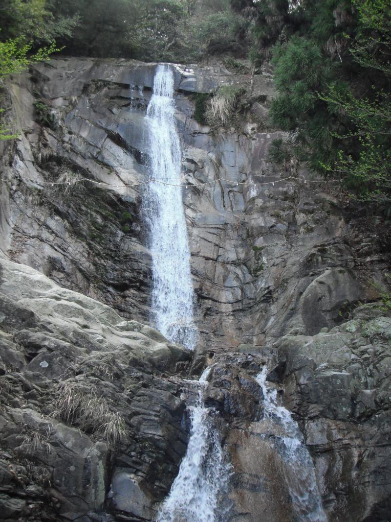 道標に従って舗装道路から登山道へ。整備された歩きやすい道です。幾つかの小滝を経て白糸の滝。しめ縄が張られ荘厳な雰囲気です。そばにお不動様がおわしたので安全祈願して進みます。