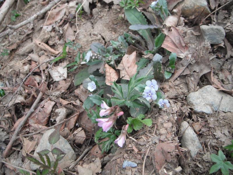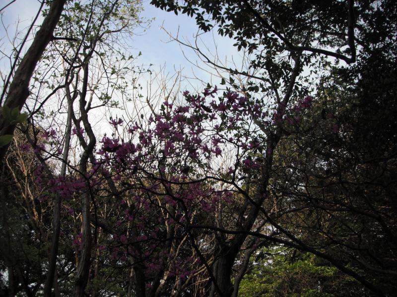 ちょっと見づらいですがミツバツツジ。今年は早いのだとか。