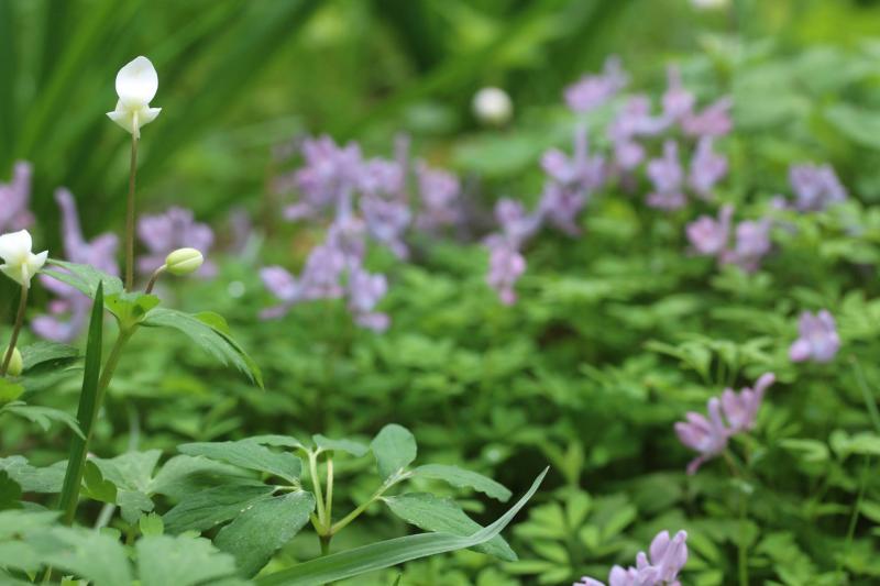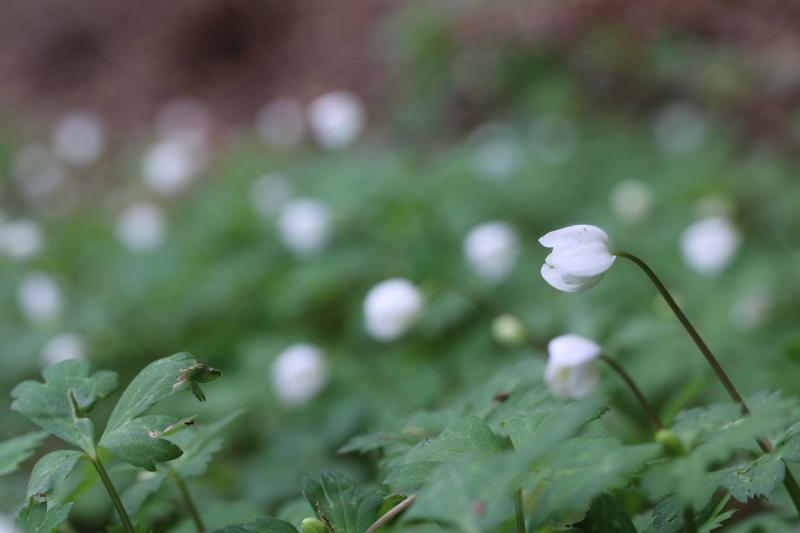 ニリンソウ、ショウジョウバカマなどの春の妖精探しに、奥の山にも入ってみましたが