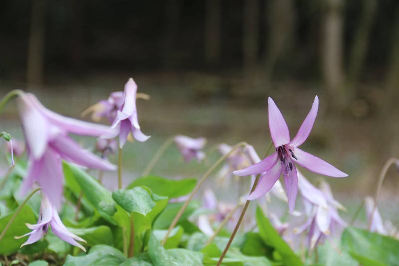- 曇で、寒波が来たため カタクリの花はつぼみでした。見頃は三日前くらいです。今年は開花が早めです。