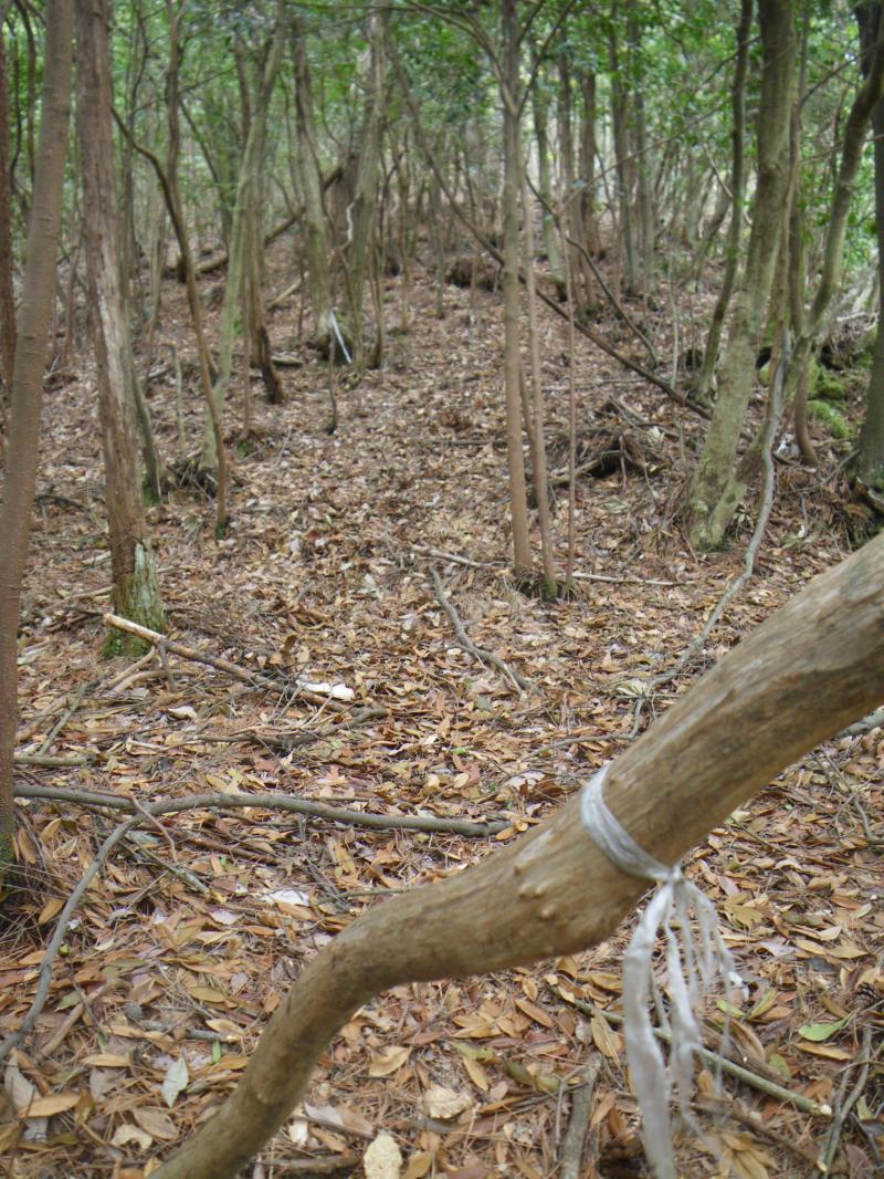 ③登山口にはテープがあり、そこが登山口というのがわかります