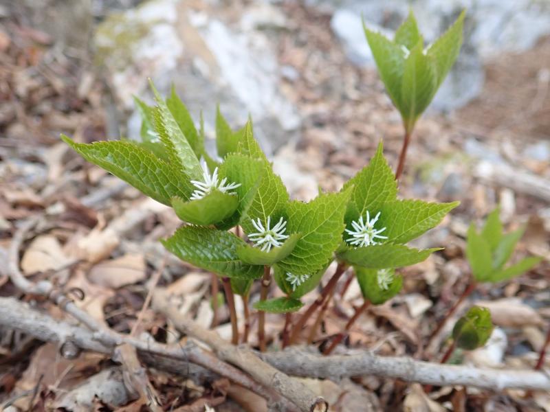 4/16 見られた植物 (主に花が見られた分岐~無双洞ああたりは石灰岩でした)
