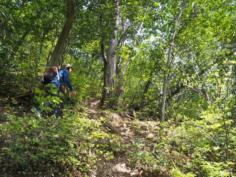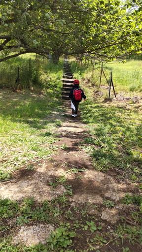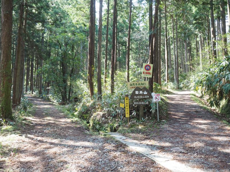 下りは西ノ谷コースへ。いきなり急な下りが始まります。というかこのコースは尾根上をひたすら、ただひたすら下ります。傾斜が急なので膝に負担がかかりそうです。でも距離的には短いのであっという間に駐車場に戻ってきました。