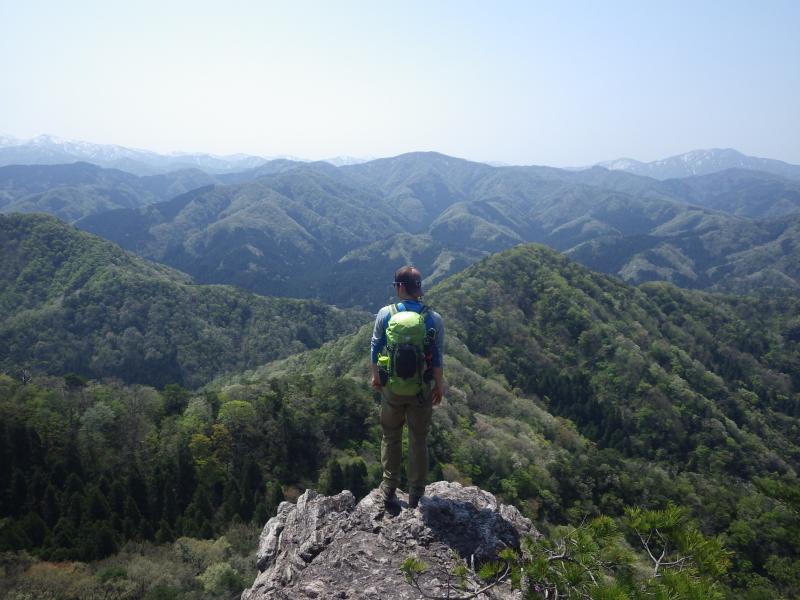右に折れるとすぐ山頂ですが今日は行ったん左に折れて後山と獅子岩へ。張り出した獅子岩からの展望は抜群です。大日山、富士写ガ岳がきれーに見えました。