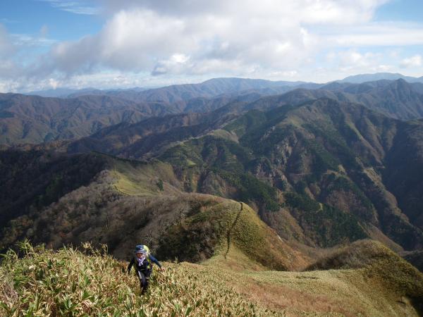 - すぐに稜線歩きが始まり、最初のピークの後は長い下り。