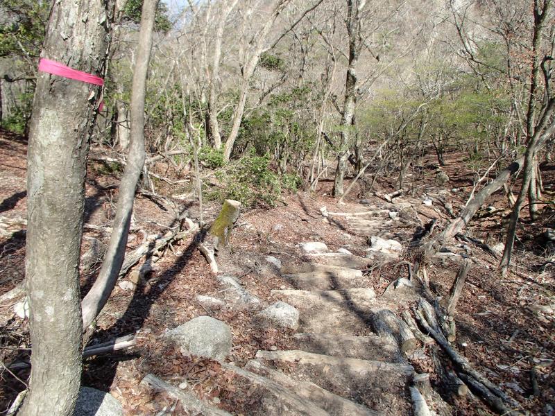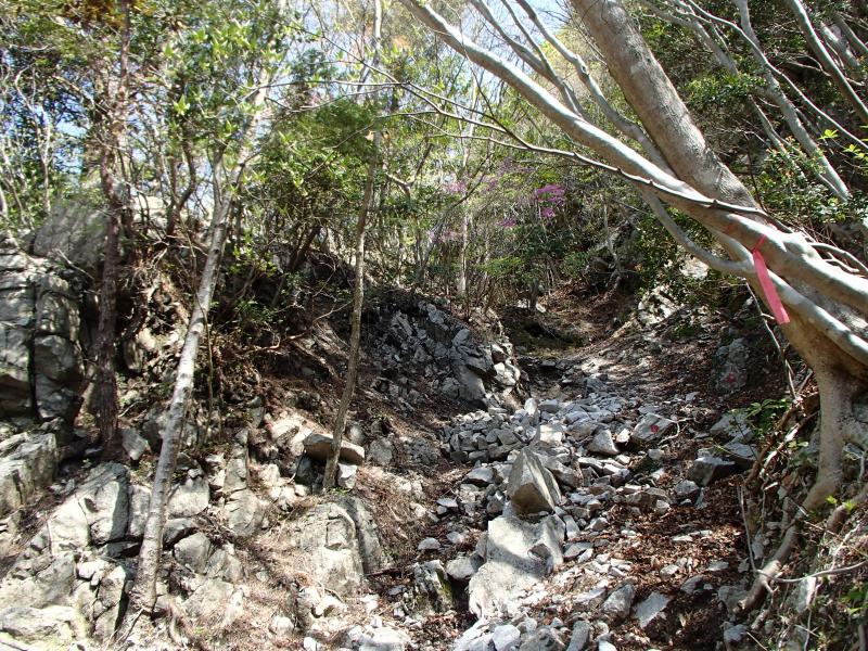 ・尾根へ向かう部分が「大蔭のガレ」。ショウジョウバカマが咲く急登です。所々に鎖が配されていますが、ゆっくり登れば心配ありません。ただし、落石を起こさない様、注意して下さい。
