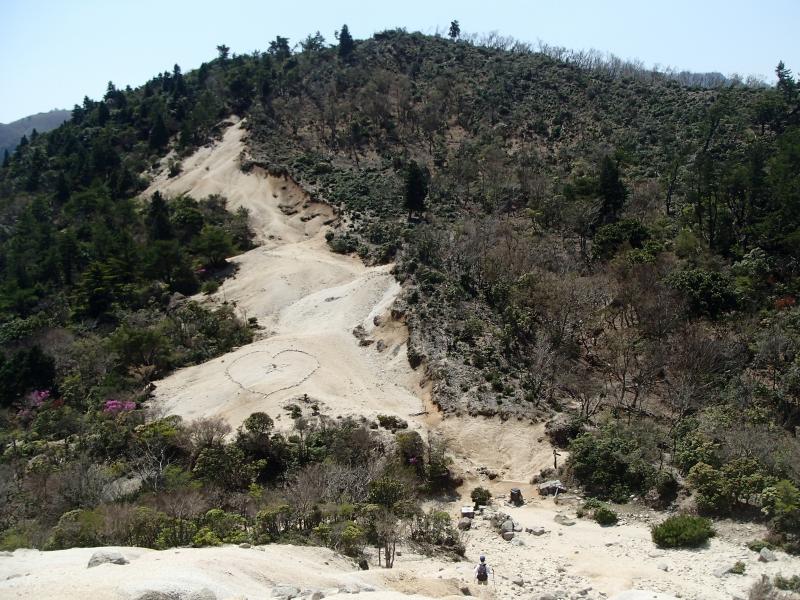 ・羽鳥峰でお昼休憩。おにぎりを頬張りつつ、ふと下を見るとザレた広場に石で作ったハートマーク、中心には星印。後続の登山者の心を癒してくれる心遣いなのでしょうか。登山にもいろんな楽しみ方がありますね。