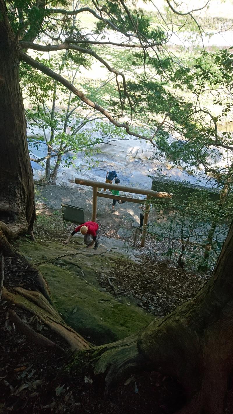 まずは鎖を掴んでの油こぼし。三点支持が出来れば鎖を持たずに行けますが、安全第一で登りましょう。