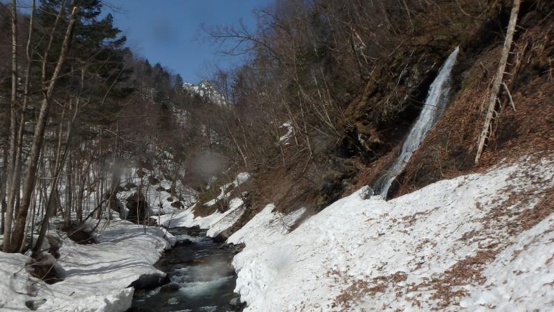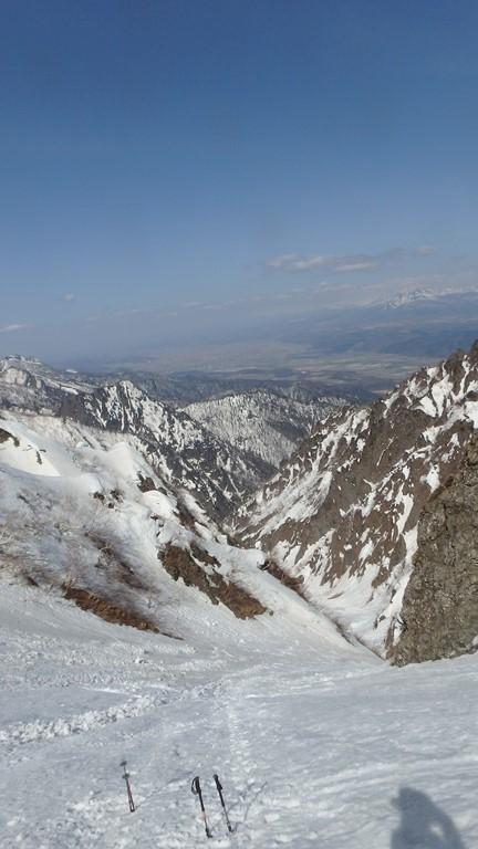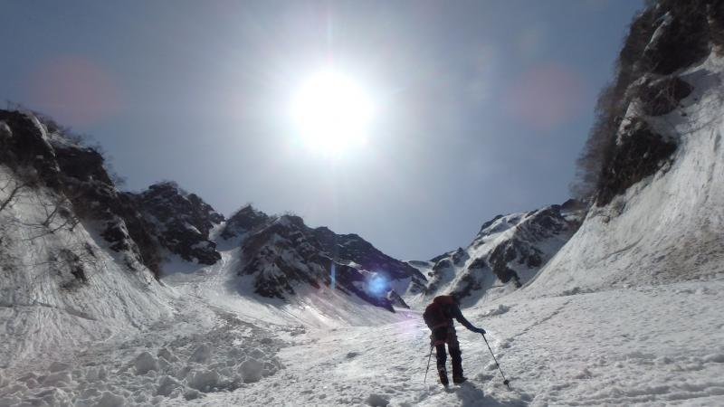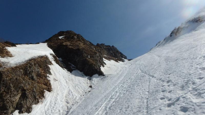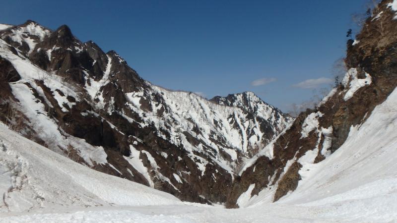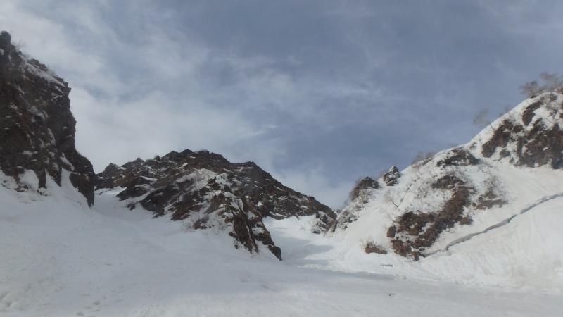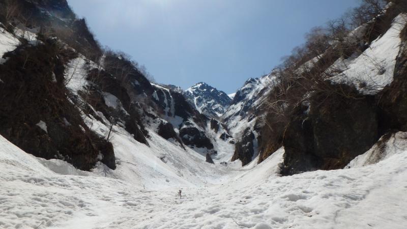 本谷はまだデブリの跡が多数。まだブロック雪崩や雪庇の崩落が落ち着いていないので通過は慎重に。