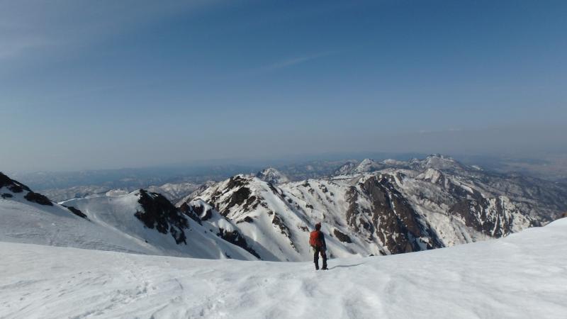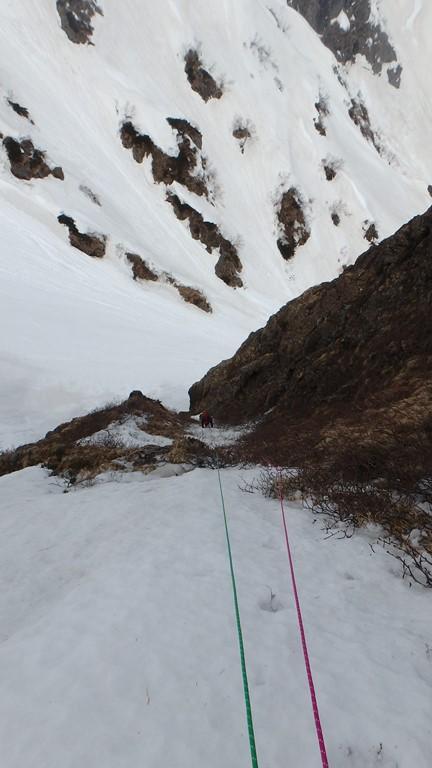 1稜は雪がかなり少なめ、3級程度のセクションが最後に少しある程度。取り付き始める場所によりピッチ数が変わるが7~10ピッチほど。難易度は高くないのでさほど時間はかからないと思います