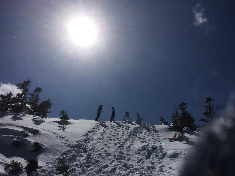 - 適度に雪がしまっていてアイゼンなしでも黒百合ヒュッテまで歩けました。
