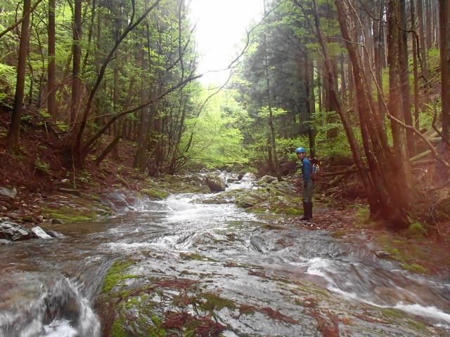 木原谷(右俣)は15mの滝以外は沢でも岸でも歩ける印象。でも、なめが多いので沢靴の方が楽しい。