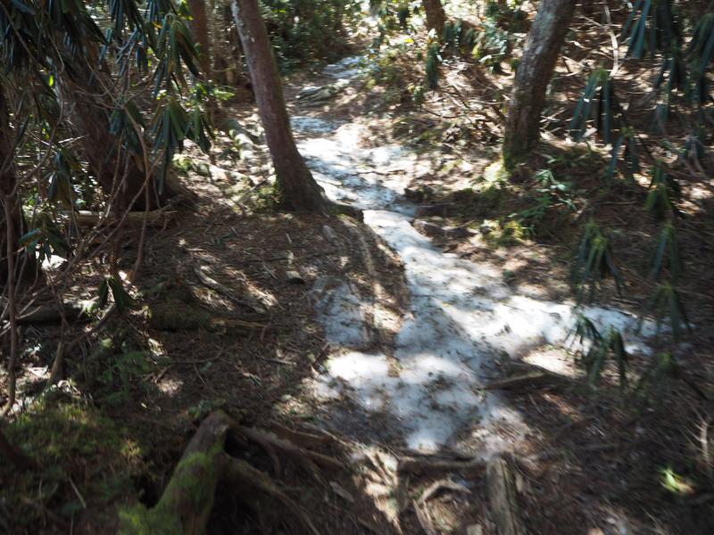 中間地点より上では、残雪とまでは言い難いが雪が残っていてカチカチに凍っていたので