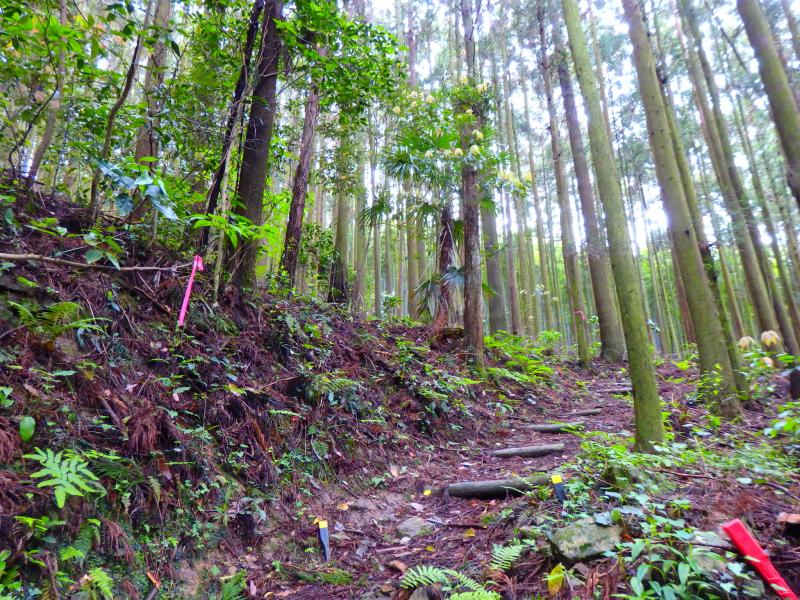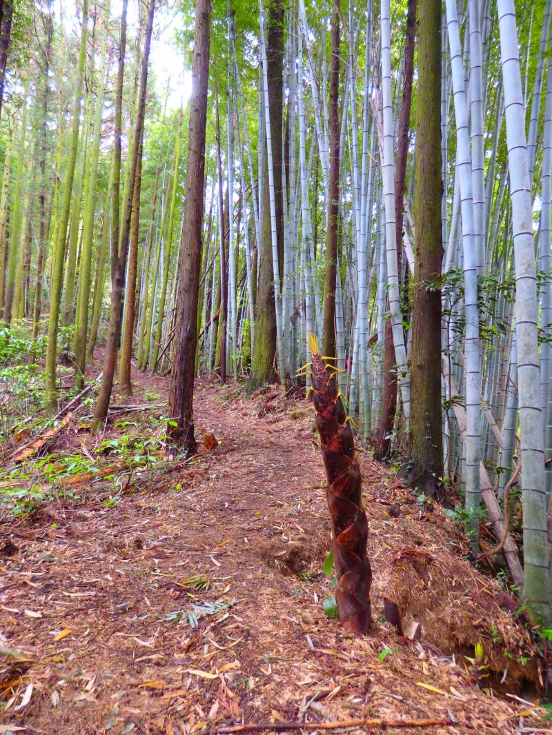 樹林帯で、雨上がりは滑りやすいです。