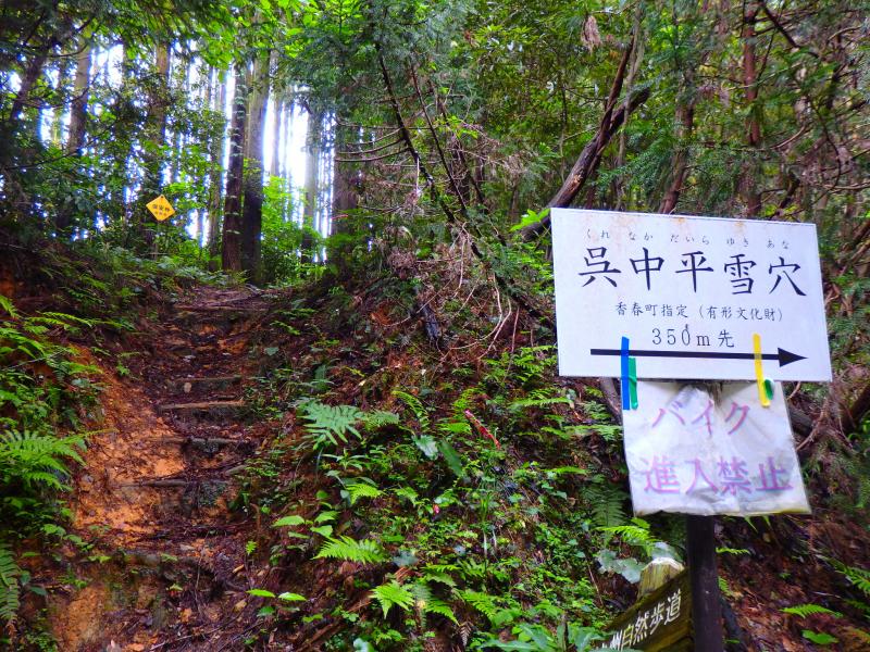 - 呉ダム登山口〜(70分)〜分岐〜(10分)〜大坂山(飯岳山)山頂〜(5分)〜薬師の頭〜(5分)〜大坂山山頂〜(40分)〜呉中平雪穴〜(20分)〜呉ダム登山口