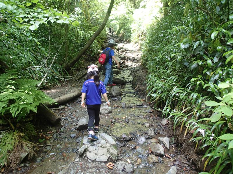 更に前日大雨が降っていたこともあり、日陰が多いこのコースは全体的にまだ乾いていませんでした。軽い岩場や木の根も滑りやすく、所々ぬかるんでいるところもありましたが、気を付けて行かせれば子供でも問題なく歩けました。