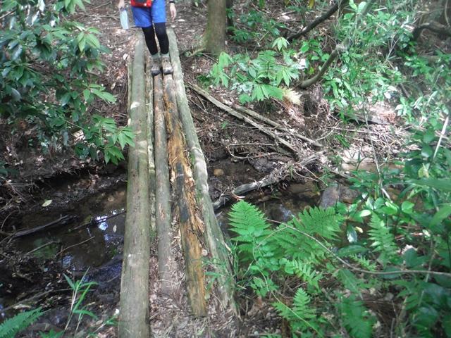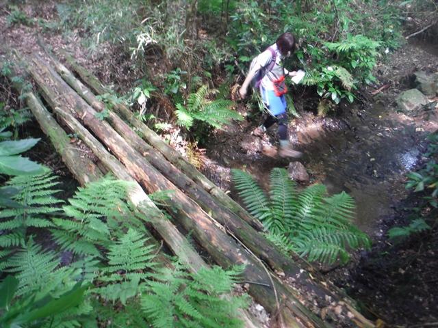 朽ちかけた二つの丸太橋を過ぎると小さな沢の中を歩くように
