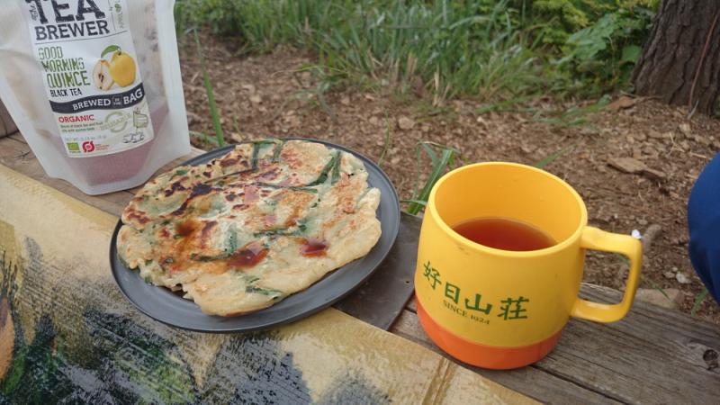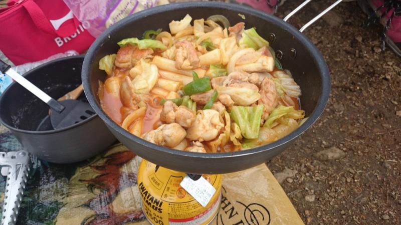 山ご飯は友人お手製、ニラチヂミとチーズダッカルビ!