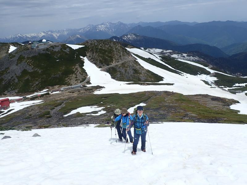 昨年にひき続き残雪の乗鞍岳に登ってきました。夜行バスで松本まで行けば日帰りも可能なコースですが、乗鞍高原の温泉宿に泊まってのんびりすることを目的に登っているので、今回も山水館信濃さんにお世話になりました。