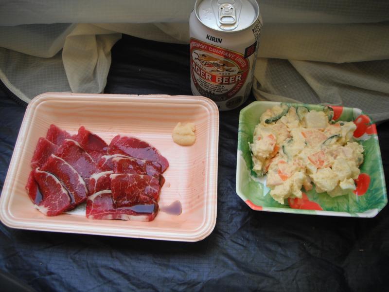 前日は阿蘇市の坊中野営場にてテント泊。熊本名物といえば馬刺しでしょう!馬のパワーを取り込み、英気を養いました。