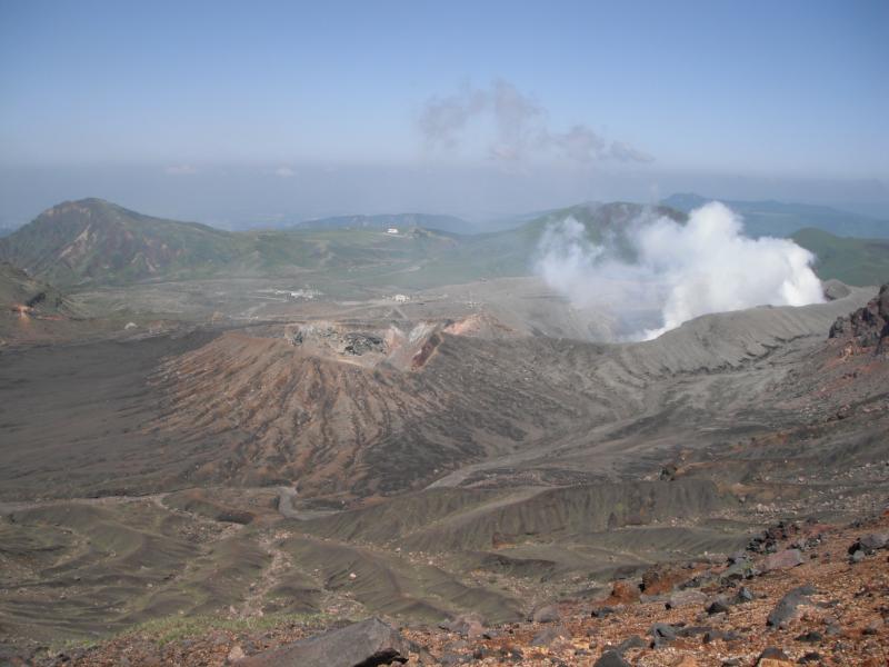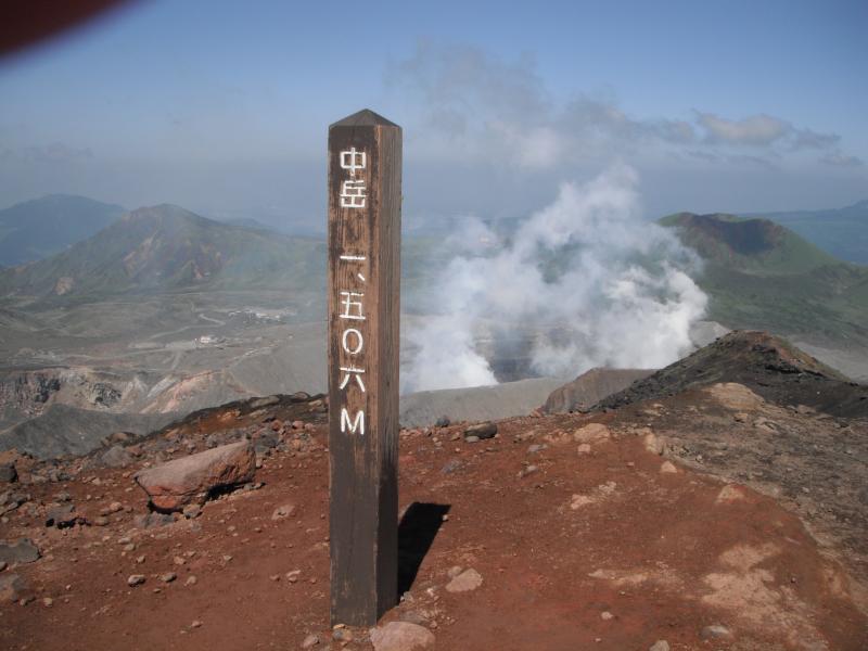と、その時、何やら緊急放送が!火山ガスが発生しているため、退避せよ!とのこと。え〜!念のため警備員さんに聞いてみると、高岳方面なら大丈夫だと思うけれど、火口には近づくことまかりならぬ!というようなことを言われ一安心(?)。