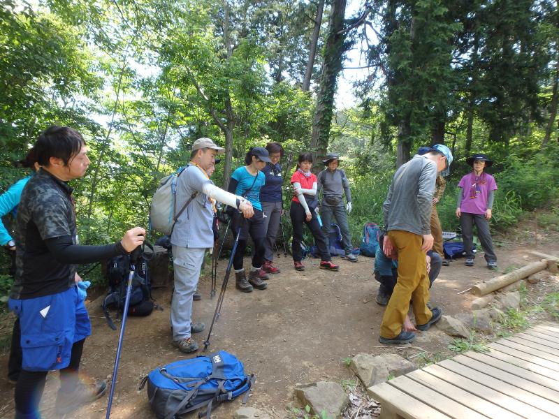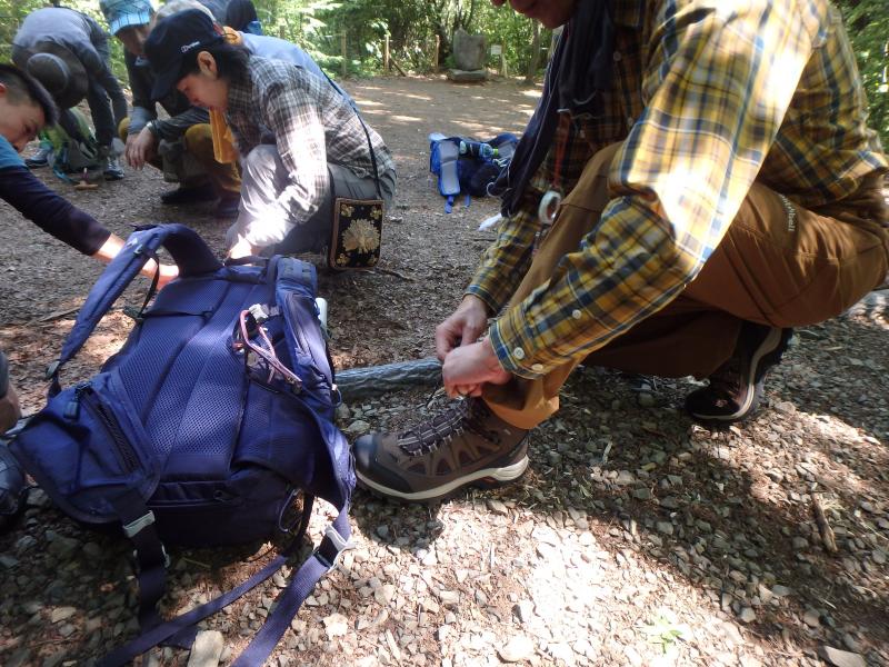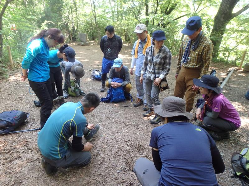 内容は主に「靴紐の結び方」「ザックのパッキング方法」「ストックの使い方」「コンパスの使い方」