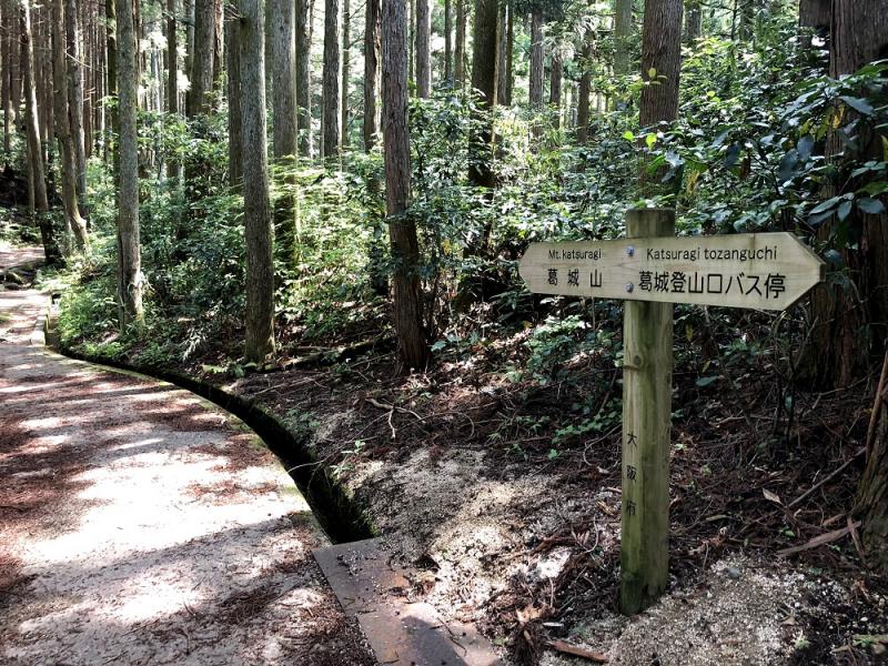 近鉄長野線、富田林駅から水越峠行きのバスに乗車、葛城登山口で降車。バスが走ってきた方向へ50m程戻ると、集落へ続く坂道がありそれを5分程歩くと、道標があり葛城山方向へ。