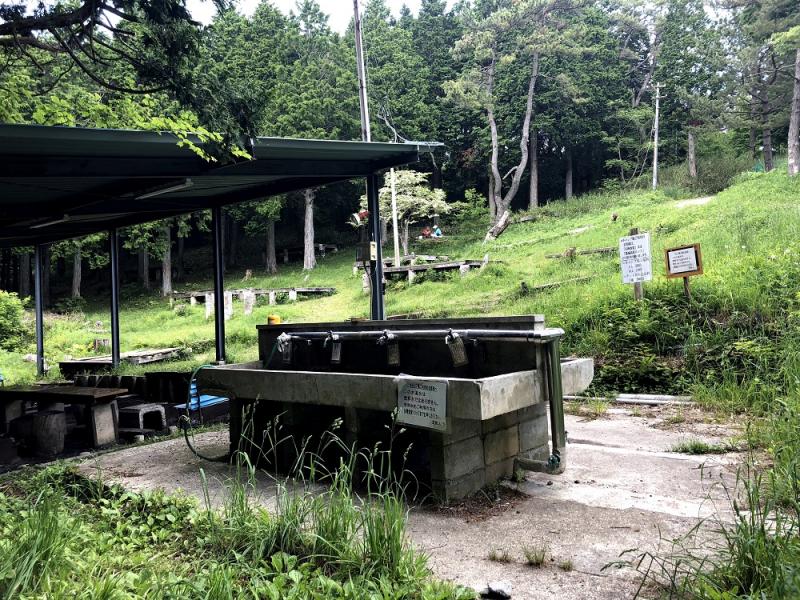 ひたすら木段、石段です。膝が弱い方は、サポーターをつけたり、ストックをついたり工夫して下るのがいいと思います峠手前で水場があります。車道出たら、50m程下ると左手のフェンスに道標が出てきて、それに従いフェンスの中へ行きます。
