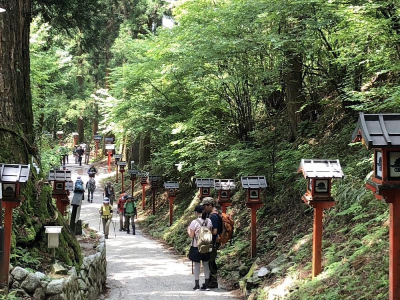 綺麗に整備された木段、石段が下まで絶え間なく続きます。親子、外国人、お年を召した方、みんなが安全に歩けるようしっかり整備されています。危なげなく終了。