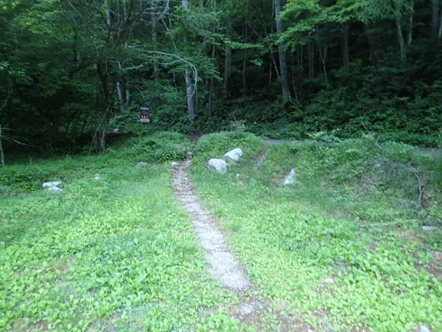 さて、最初は林道。ひんやりした空気が気持ち良い。左手の川幅が大きくなり、トンネルをくぐればそこが登山口だ。木の橋がかかっているので、それを渡って登る。