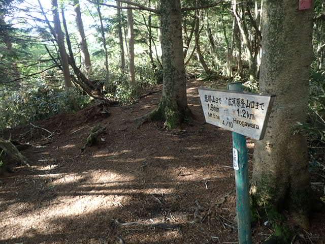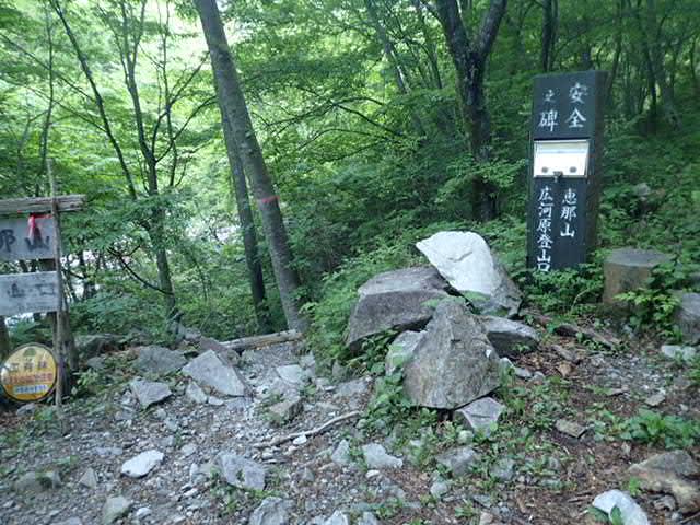 - 広河原駐車場 →(25分)→ 恵那山登山口 →(140分)→ 恵那山山頂 →(8分)→ 恵那山山頂避難小屋 →(5分)→ 恵那山山頂 →(100分)→ 恵那山登山口 →(20分)→ 広河原駐車場