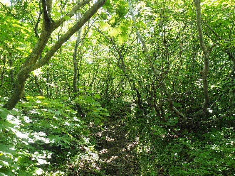 さぁもうひと踏ん張り。徳助の頭をすぎるとブナ林に入る。下ることで必死になりがちだがこのブナ林はいい。ぜひ立ち止まって堪能して欲しい。人々が住んでいたんだろうか、という石垣が現れると突如スタート地点にでる。着いたーーー!!