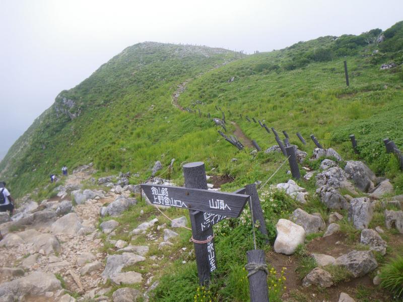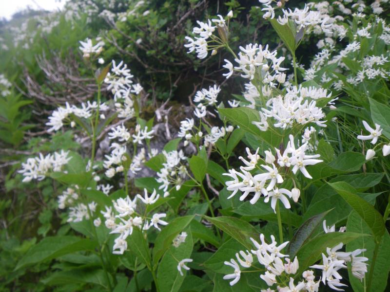 ⑥3合目にフェンスに区切られた部分に花が咲きますが、今回はアヤメ・ハクサンフウロ・ユウスゲが見られました