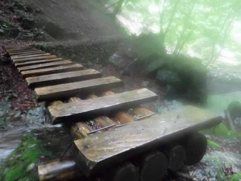- 水根沢キャンプ場-(120分)-半円の滝-(150分)-登山道の木橋-(40分)-水根沢キャンプ場