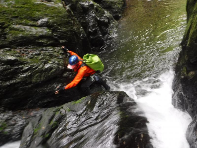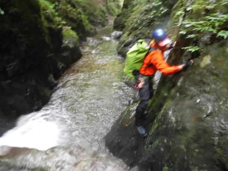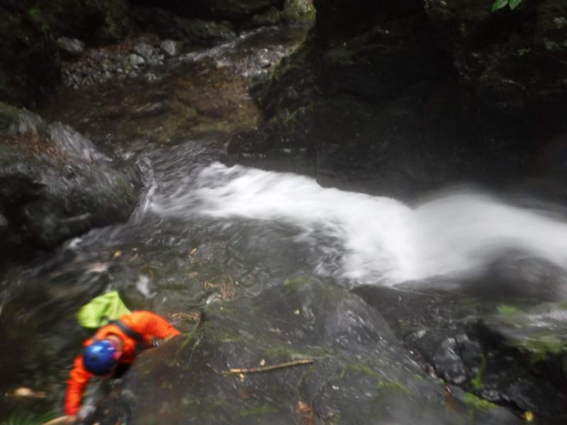1か所、高巻きしました。沢に戻る時、20mで懸垂下降。