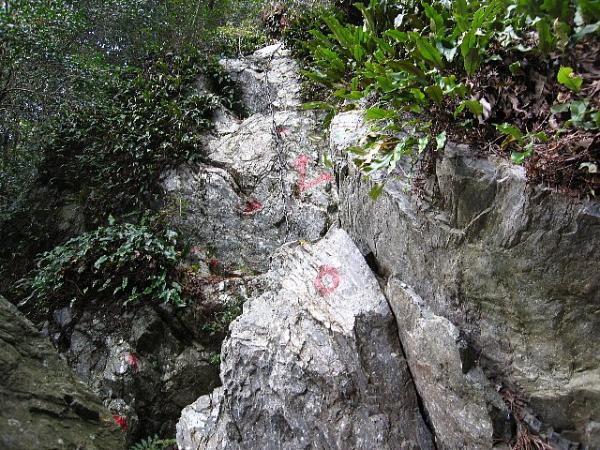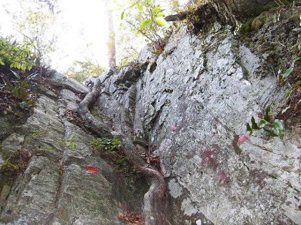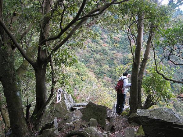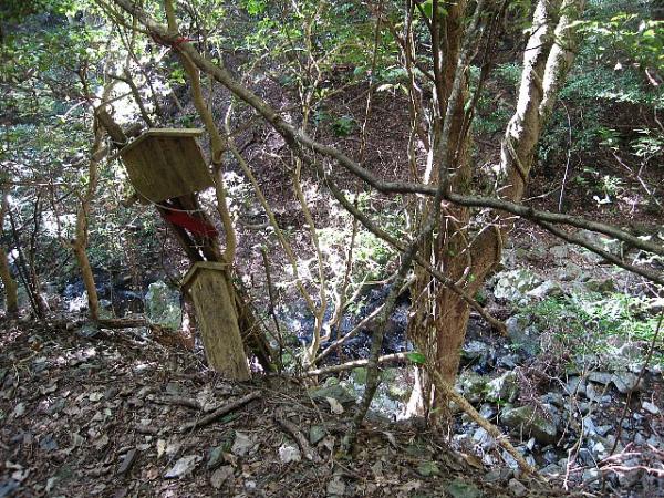 行場は岩や木に目印がつけられているので注意すれば迷わないのですが、踏み痕や道ばかり見ていると違う場所に行ってしまいます。五光の滝から護摩壇の間の分岐がわかりにくいです。ポイントは金属製の橋を渡る前にある看板のところで右後ろにくだる道があります。