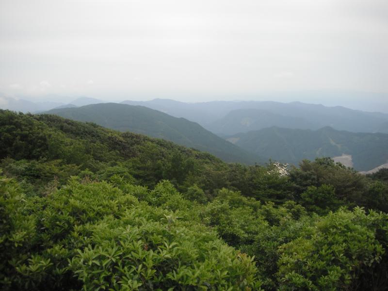 続いて馬見山を目指すわけですが、途中新進気鋭の山頂、江川岳に立ち寄りました。なんでも無名のピークだったのが一般公募で最近命名されたとか。なかなかの急登でした。そしてやけに下るなあと思っていると300m近く下っており、馬見山まで同じくらいの登り返し…。今回また古処山まで戻らねばならないので標高差300mの登り下りを2セット…。良いトレーニングになりました。馬見山ではこれまた最近落成した避難小屋を見学。とてもきれいでした!そして展望地で休憩。肉眼では九重まで見えました。