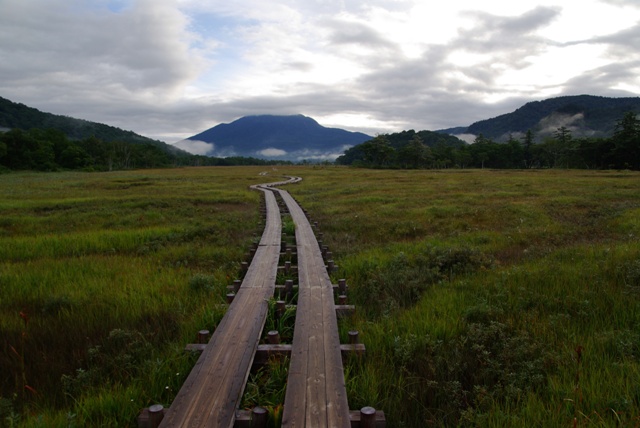 段吉新道辺りから単線の木道に変わり、赤田代付近より複線の尾瀬らしい木道になります。