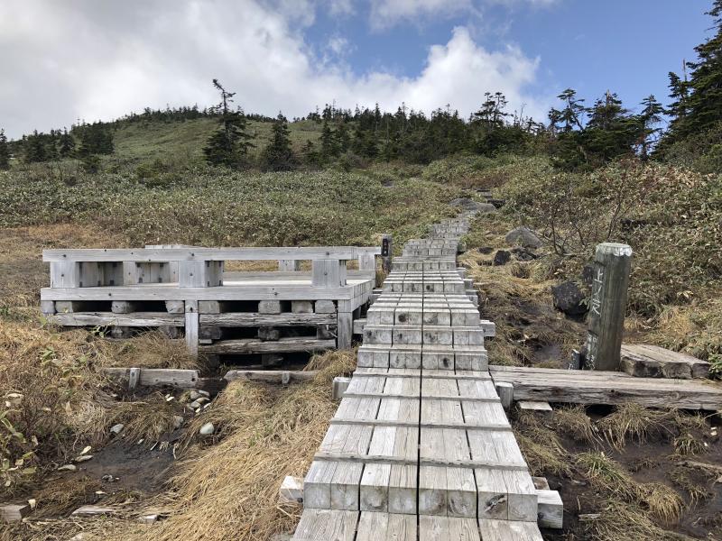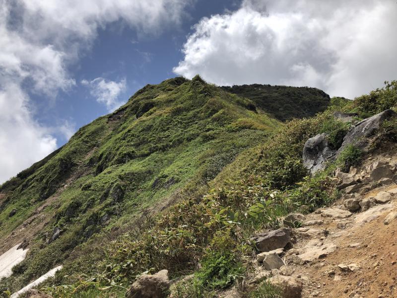 残雪があるとのことだったので軽アイゼンを持参しました。幸い、山頂に至る最後の急登に雪はなく一安心でした。