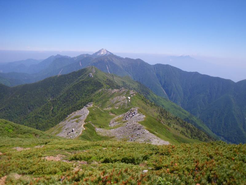 ⑧小太郎山分岐から先はきれいな稜線で隣の甲斐駒・仙丈ヶ岳・鳳凰三山、八ヶ岳、富士山と展望が抜群