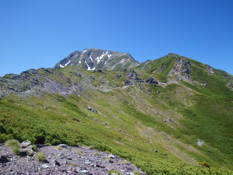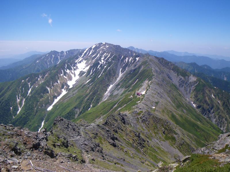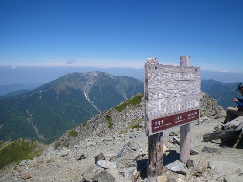 北岳(きただけ・3192m)は富士山についで第2位の高さで日本百名山・花の百名山の一つ。赤石山脈の最北という意味で北岳といい、間ノ岳・農鳥岳と共に白峰三山を構成し南アルプスの盟主。