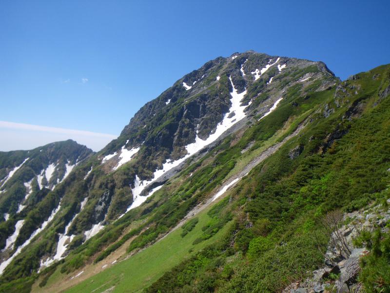 今回、南アルプス林道の開通を待って、久しぶりに北岳へ登ってきました。この時期の北岳はキタダケソウが見られますが、その群生地は八本歯のコル上のトラバース付近ですので大樺沢左俣を進むと早いですが、もちろんこの時期は雪渓が残り、ピッケルとアイゼンを持参しました。