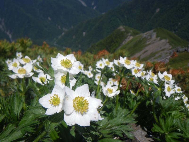 ⑨稜線ではハクサンイチゲ、キバナシャクナゲ、オヤマノエンドウ、チシマアマナ、ミヤマダイコンソウ、イワウメなどが見頃