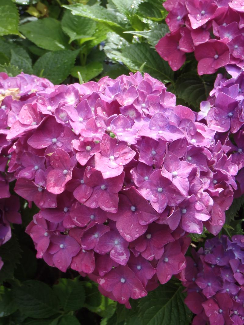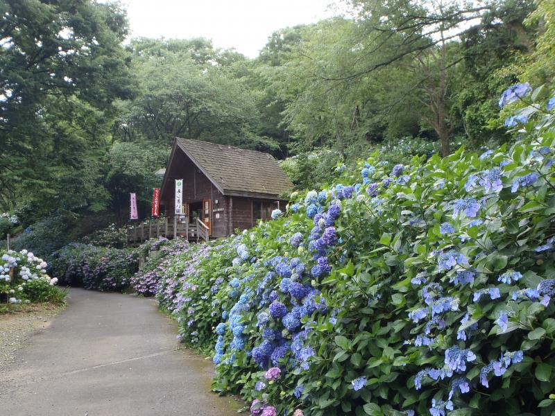 - あじさい園のアジサイは満開で、まさに見頃です。
