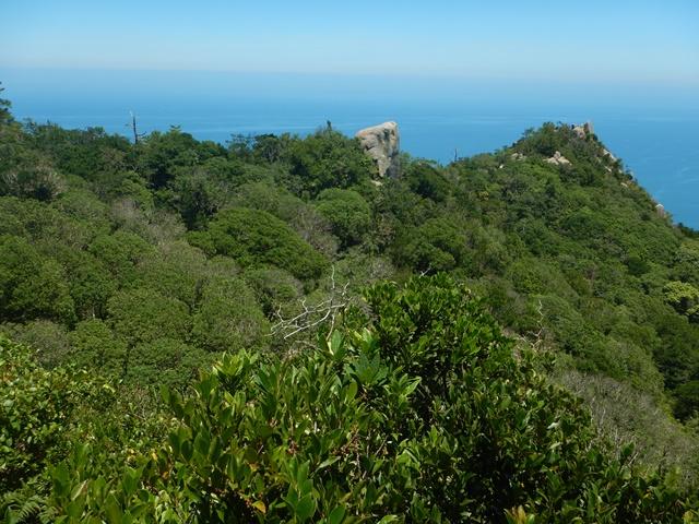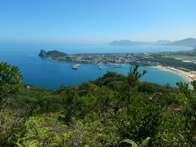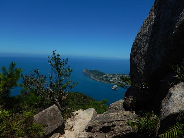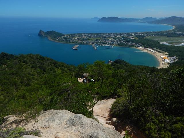 見下ろすと、青い海と遠くまで見えるきれいな景色、