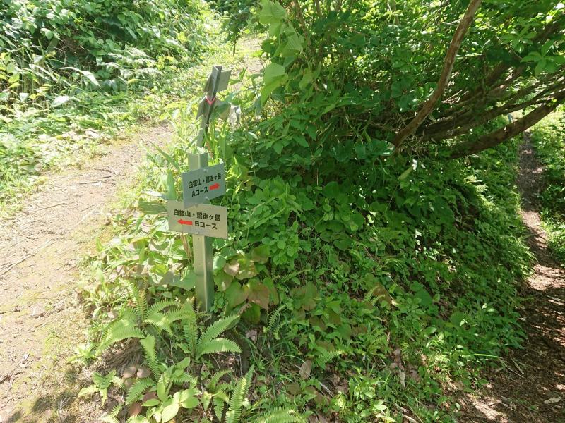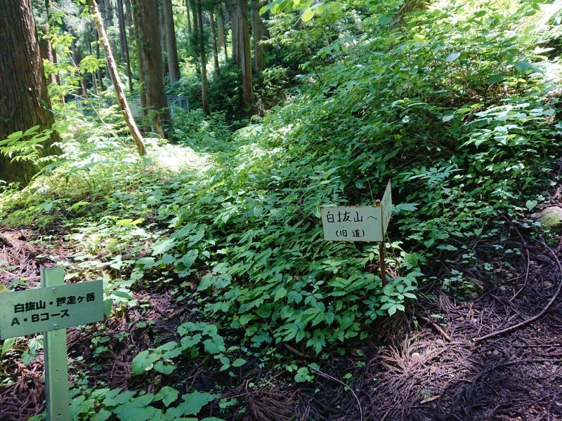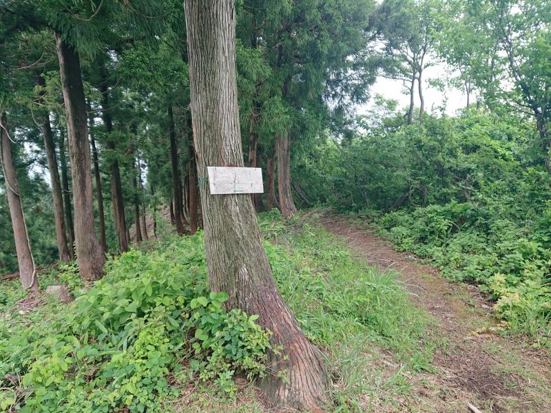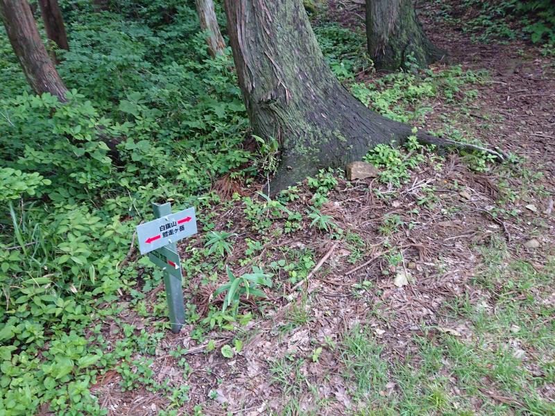 白抜山の山頂看板は文字がかすれていて、気づきにくい。