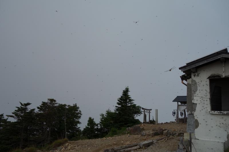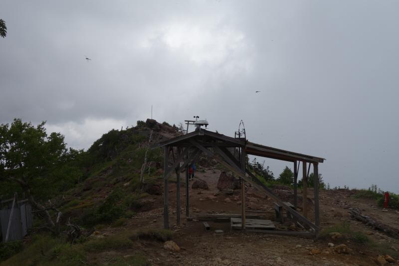 山頂で休憩中は風避けにレインウェアのジャケットを